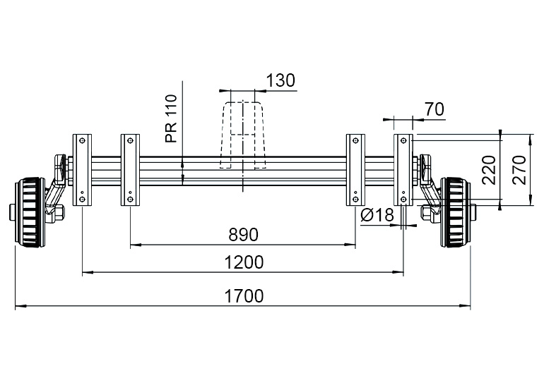 Ось тормозная торсионная (резино-жгутовая) AL-KO, нагрузка - до 1800 кг.