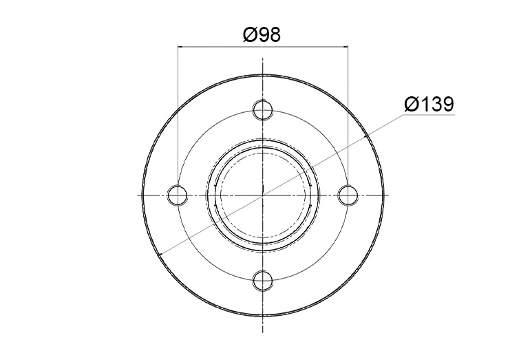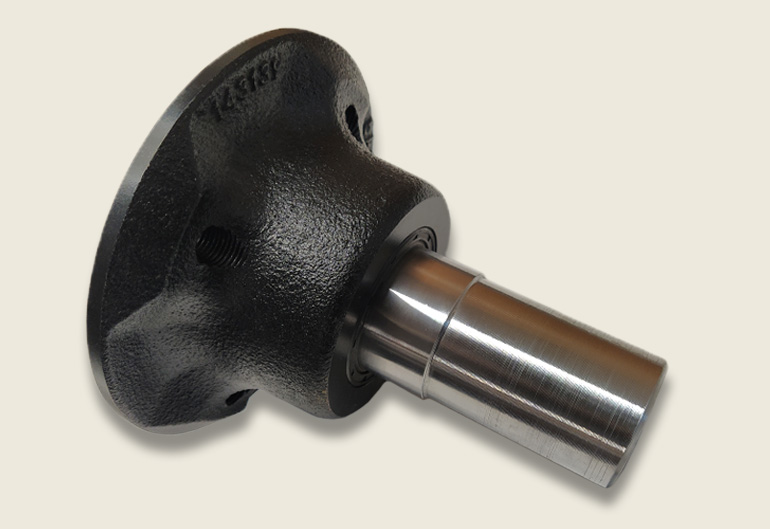 Ступица 675 кг 98х4 в сборе с цапфой для производства рессорной оси 1350 кг. Центральное отверстие колесного диска должно быть не менее 57 мм, вылет диска должен быть в пределах ET 27-45, требуемая разболтовка диска - 98х4.