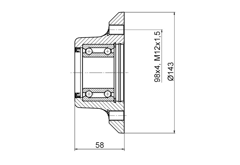 Ступица 675 кг, 98х4, с двухрядным шарикоподшипником